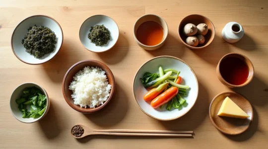 Le Washoku n’est pas une simple liste de recettes, mais une philosophie qui vous invite à cuisiner en harmonie avec le terroir québécois. Il repose sur l’équilibre des 5 saveurs et l’esthétique du dressage (Moritsuke). Sa structure (Ichiju-sansai) s’aligne parfaitement…